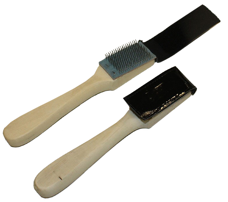 Kraftig stålborste som du ruggar upp dina mockasulor med när de blivit fulla med smuts och dansvax från golvet. Det hjälper dig även att få skorna mindre hala.